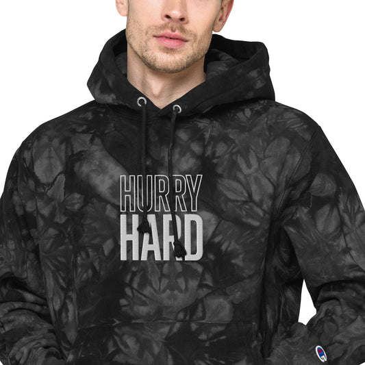 Hurry Hard Champion Tie-Dye Hoodie - Black/White